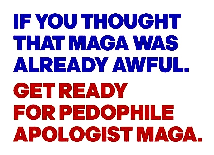 (510 posts)I have seen no evidence that Trump actually raped children. He was probably aware that others did, though. Trump is evil and disgusting but unless something comes forward that in fact shows that he raped children, I believe we should stick to what we know to be true. It is bad enough without adding other crimes of which we have no credible evidence.