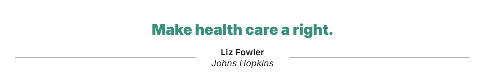 Liz Fowler is a distinguished scholar at the Johns Hopkins Bloomberg School of Public Health.