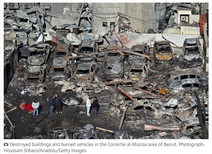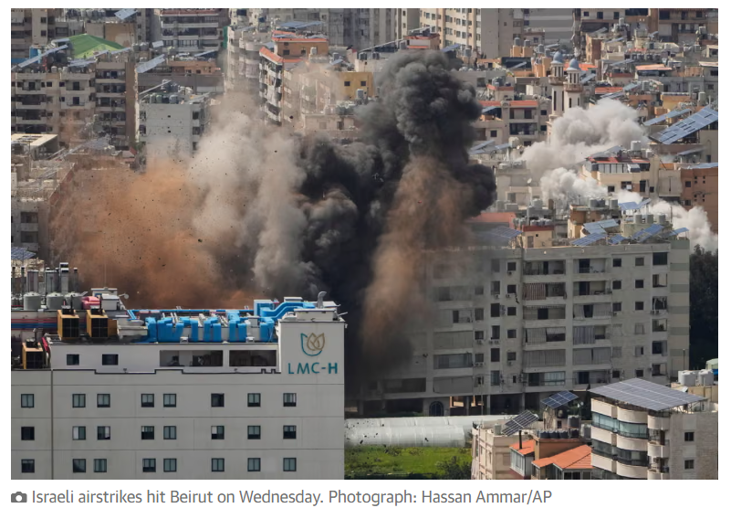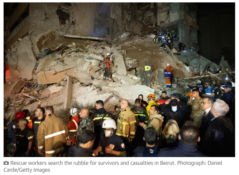 The death toll, which was expected to rise as more bodies were found, was higher than Beiruts 2020 port explosion one of the largest non-nuclear explosions in human history. The Israeli military said it had hit Hezbollah command and control centres in the bombing campaign, which it dubbed Operation Eternal Darkness. But residents and Lebanese officials said the strikes, which used 1,000lb bombs in densely packed residential areas of Beirut, mainly killed civilians. Lebanons prime minister, Nawaf Salam, accused Israel in a statement of targeting densely populated residential neighbourhoods and killing unarmed civilians in breach of international law.