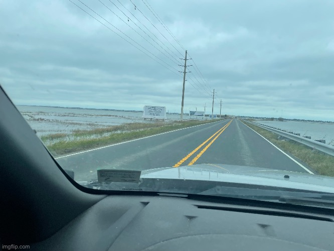 Tuesday. Just after the storm. On our way out there were 300 yards of marsh on the other side of the signs.