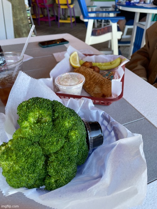 My daughter asked to substitute broccoli for fries on her fish n chips