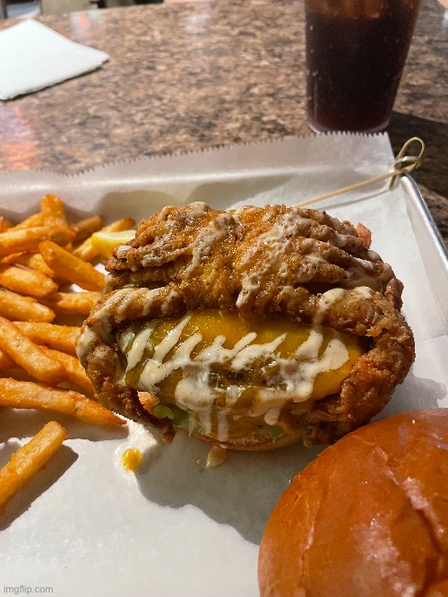 I misread the menu to say soft shell crab CAKE in the Crabby Patty. I took it off and had a cheeseburger.
