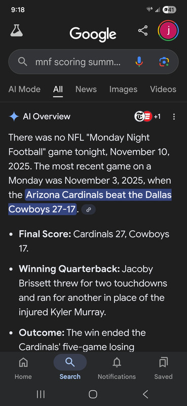(324 posts)I got really excited for a second and then realized the AI bs had totalled the scores together and given all the points to the Bears!