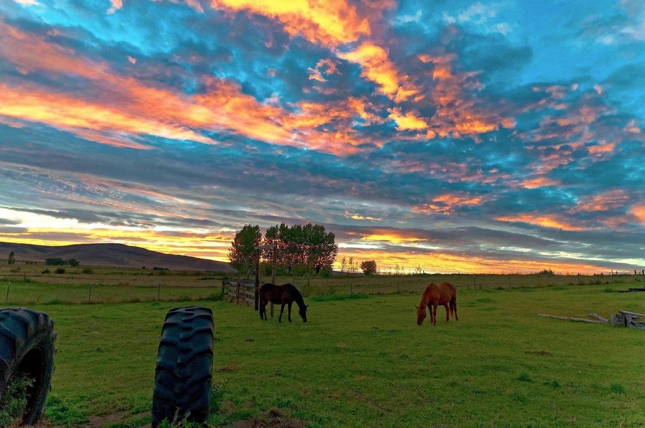 Sun rising on former boarders Fizzwinkle (at left) and Comet at the old farm.