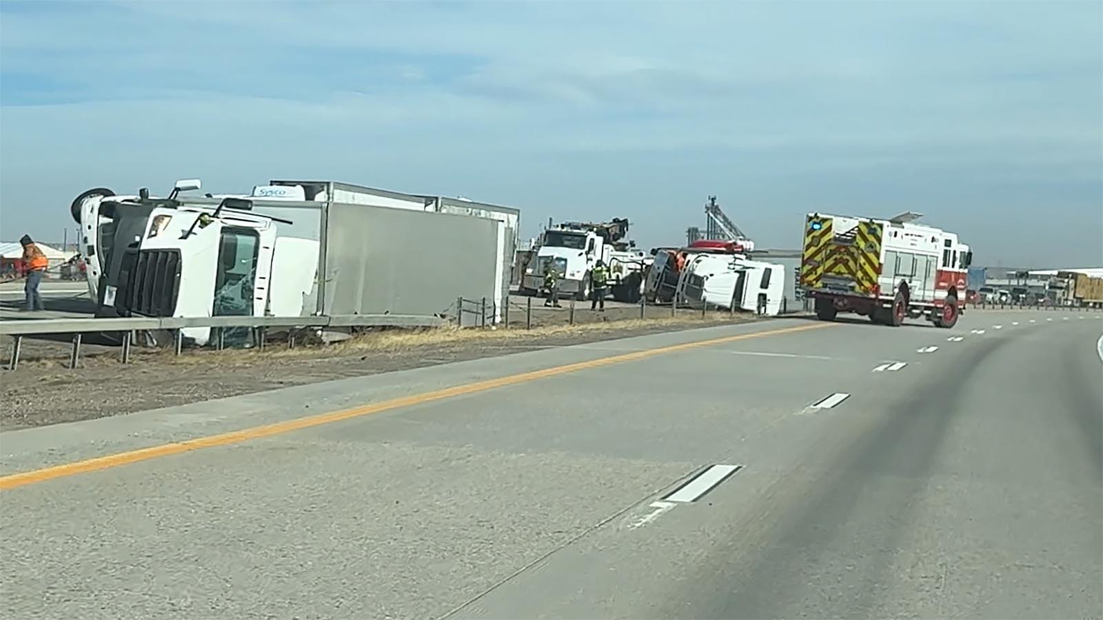 Winds gusting up to 109 mph, creating brownout conditions by blowing loose dirt and gravel, have knocked over dozens of semitrailers across Wyoming, including more than 10 between Cheyenne and the state line with Colorado.