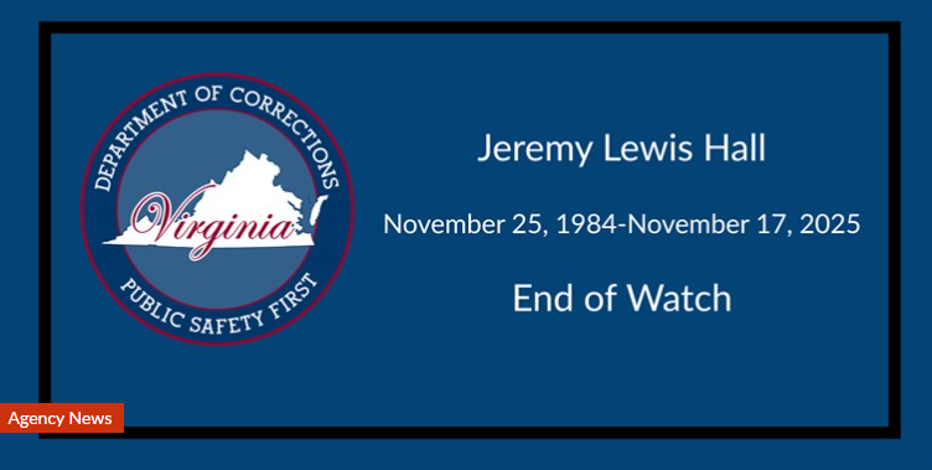 The attack occurred at 7:53 a.m. on Nov. 17, resulting in the death of Officer Hall, who had been with the Virginia Department of Corrections since April 2024. Two other officers were injured but have since been released from the hospital.